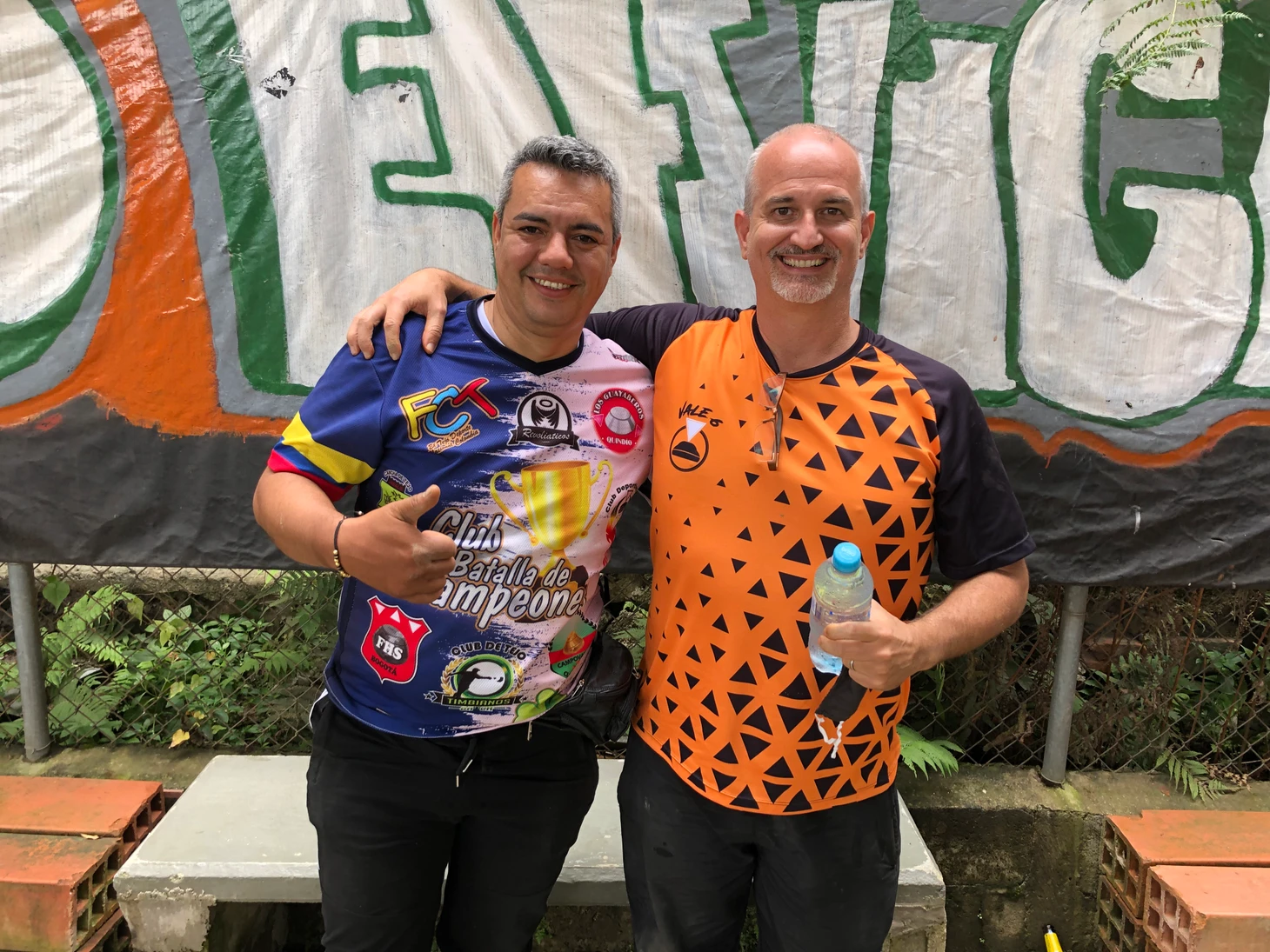 Рядом с полем находилась бетонная трибуна, с которой за игрой наблюдали несколько колумбийцев. К одному из них я и подсел, чтобы расспросить об игре. Однако, мужчина не проявил особого энтузиазма. С безразличным видом он ответил на пару вопросов, а после последующего даже не стал отвечать. Со словами «Иди за мной», он просто встал и направился в сторону небольшого ресторанчика, располагающегося по соседству с полем. За столом сидел лысый мужчина с седой бородой. Колумбиец подошёл к нему и сказал, что тут иностранец хочет поговорить об игре.