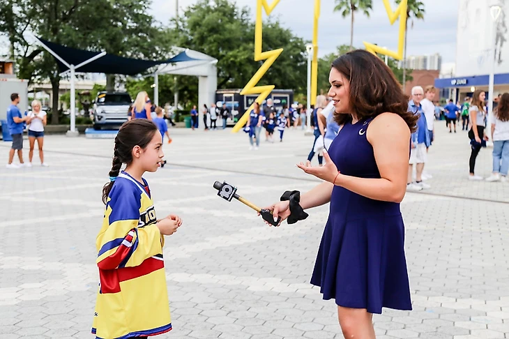 «Незадолго до нашего отъезда из Колумбии, – рассказывает Эрик. – Я получил сообщение от Джоша Дрейта, менеджера программы молодёжного и уличного хоккея «Тампа Бэй»: «Эй, завтра на стадионе будут смотреть выездную игру «Тампы» против «Айлендерс», могла бы ваша команда провести небольшой матч во время перерыва между периодами?»