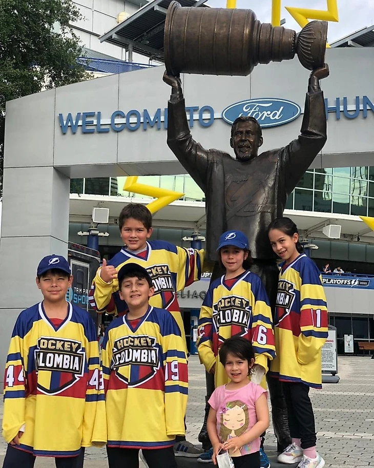 В Колумбии есть несколько публичных и частных площадок. Есть даже очень хорошего качества, которые принадлежат федерации. Тем не менее, ледовой подготовки явно не хватает. Поэтому, чтобы сделать шаг на новый уровень и помочь детям развиваться в хоккее в июне 2021 года Эрик вместе с учениками ездили в хоккейный лагерь, организованный «Тампа-Бэй Лайтнинг».