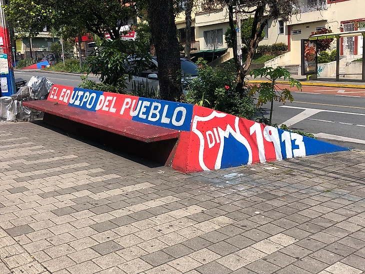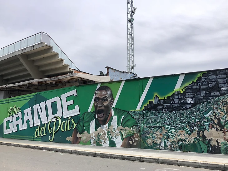 По многочисленным флагам и баннерам, развивавшимися на трибуне, можно было изучать географию департамента Антиокия и Колумбии. Наименования различных городов и поселений показывали обширную поддержку клуба, а многочисленные граффити, которые я встречал в разных частях страны, подтверждали, что «Насьональ» является самым популярным клубом страны.