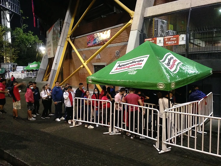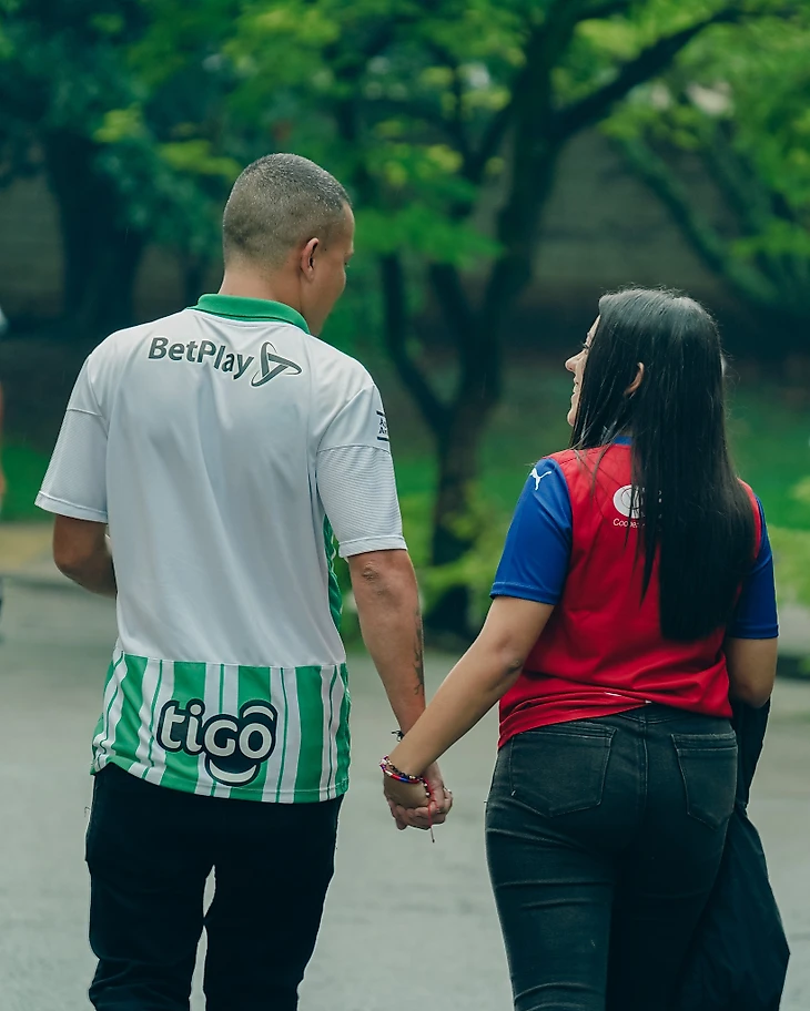 Вокруг стадиона люди в зеленых и красно-синих цветах спокойно ходили вперемешку. Попадались пары, где один из партнёров был одет в футболку Насьоналя, а другой в футболку Медельина. Хотя людей в зелёном всё-таки было в разы больше. Что неудивительно: матч был домашним для Атлетико.
