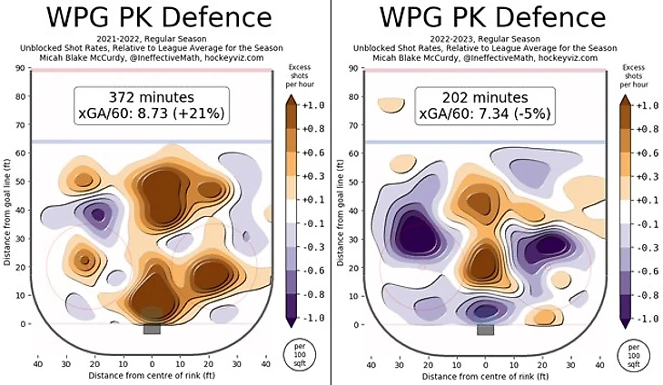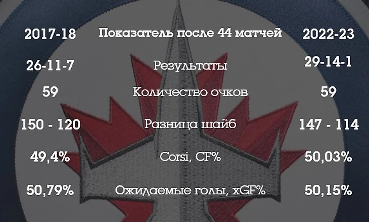 Принято считать, что самым сильным «Виннипегом» последних лет была команда в сезоне-2017/18, которая дошла до финала конференции. Если брать показатели этого сезона и наложить их на данные пятилетней давности, то они будут выглядеть почти идентично.