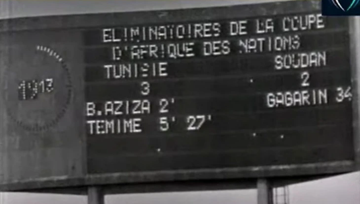 Один из голов в отборе Гагарин забил Тунису. Посмотрите, как органично смотрится фамилия советского космонавта на табло стадиона «Эль-Мензах».