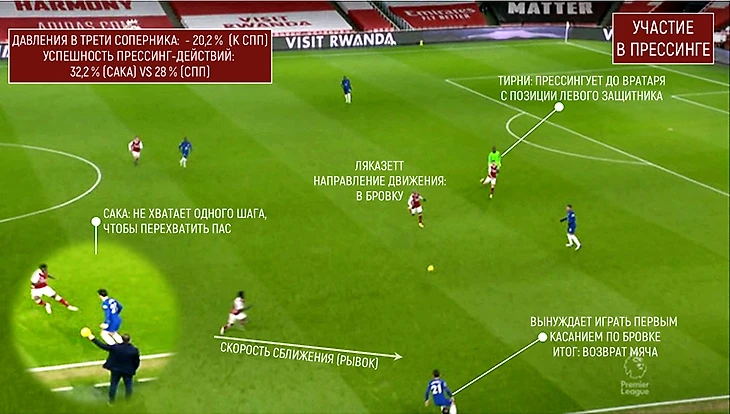 И такие ситуации (спичечный коробок против поезда) – далеко не единичный случай. Понятно, что это могут быть издержки общей командной антропометрии. Сака бросали и против огромного Ласселса (борется с ним за выбор позиции, Луиз и Нкетиа в зонах)…