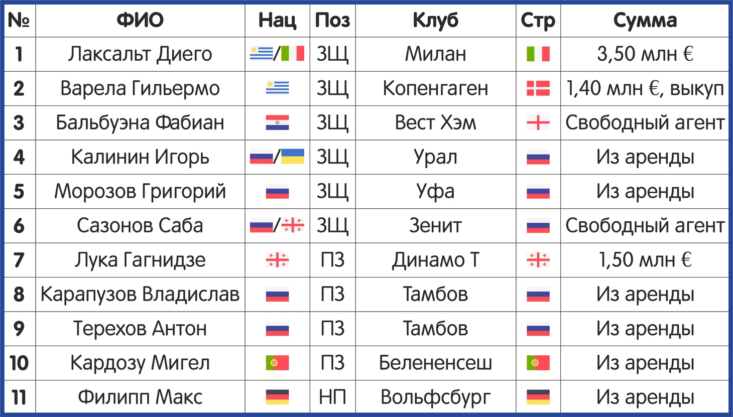 Как я уже отмечал выше, главными трансферами команды в это межсезонье являются приходы в защитную линию Диего Лаксальта из «Милана», выкуп контракта его коллеги по уругвайской сборной Густаво Варелы у датского «Копенгагена» и подписание в качестве свободного агента Фабиана Бальбуэны, последнее время игравшего в «Вест Хэм Юнайтед».