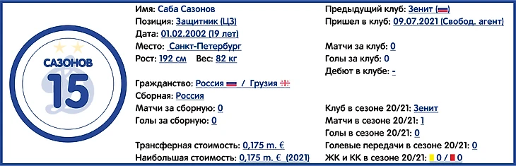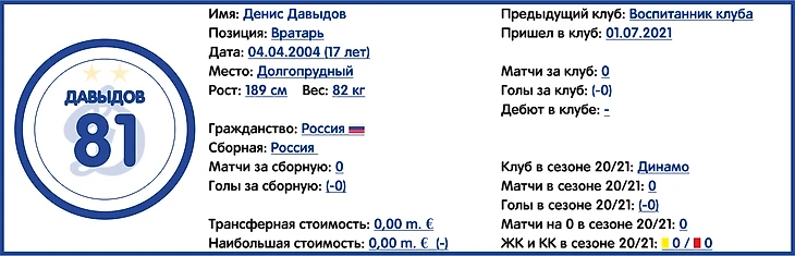 Помимо этого можно также отметит и переход в стан динамовцев перспективного защитника Сабы Сазонова из питерского «Зенита» (провел 7 матчей в товарищеских встречах на сборах), а также покупку из тбилисского «Динамо» 18-летнего грузинского таланта Луки Гагнидзе (который, правда, ближайший сезон на правах аренды проведёт в «Урале»).