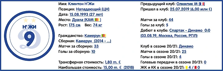Главное приобретение московской команды в это межсезонье. Имеет опыт выступлений в АПЛ (играл за английский Вест Хэм Юнайтед). Обладает качественным дальним пасом, достаточно габаритен и отлично ведет борьбу на втором этаже, плюс обладает качественным навыком чтения игры, что позволяет ему грамотно выдергиваться на соперника, зачастую выходя победителем в игровом моменте.