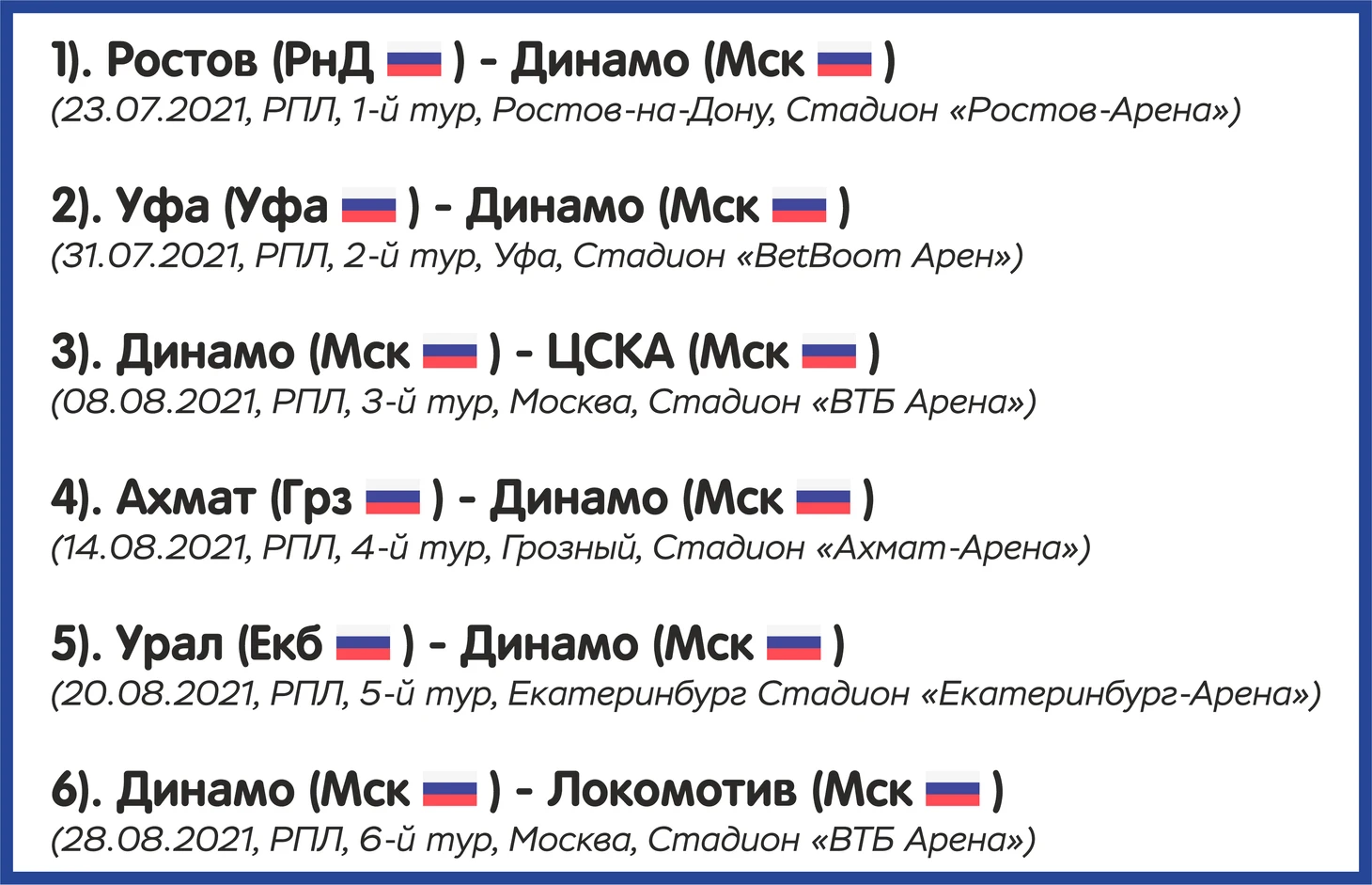 Статистическое превью ФК «Динамо» от блога «Топ-7 Матчей Недели»