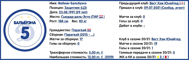 Безусловно среди прочих приобретений выделяются парагвайский центральный защитник Фабиан Бальбуэна, имеющий опыт выступлений в английской Премьер-Лиге (за «Вест Хэм Юнайтед»), и уругваец Диего Ласкальт, купленный динамовцами у самого итальянского «Милана».