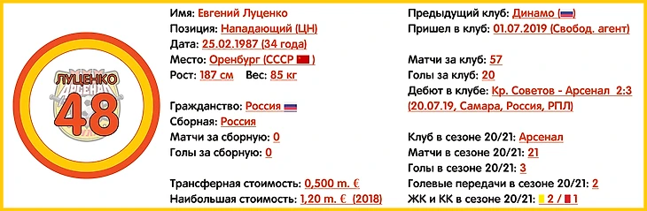 Евгений Луценко обладает достаточно крупными габаритами (187 см рост и 84 кг вес), однако является большим универсалом и может забивать практически любым способом (если разобрать тот самый сезон 2019/2020, то увидим, что 7 голов он забил тогда головой, 4 - левой ногой и столько же правой).