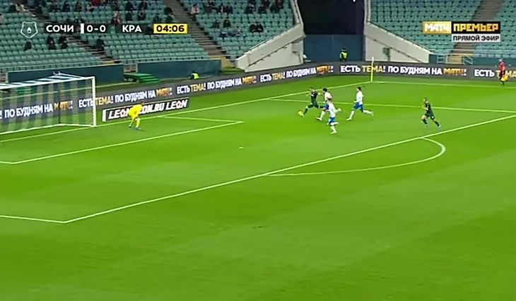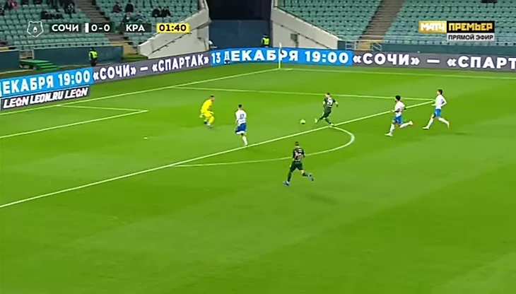 В стартовом составе "Краснодара" всего во второй раз в сезоне вышел Ильин (появлялся ранее обычно на замену Кордобе). Итак, начало матча, первая атака за "Краснодаром", выход Ильина 1 на 1. Мимо.