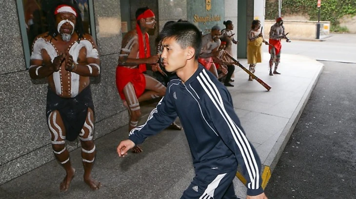 Темно-серые спортивные костюмы без опознавательных знаков, одинаковые черно-зеленые кроссовки – сборная КНДР прибыла в Сидней без лишнего шума. Даже название отеля, в который заселилась команда, в оргкомитете Кубка Азии узнали в последний момент. Там сборную ждал приветственный перфоманс с танцами коренных австралийских народов и несколько мальчишек, собирающих автографы. Игрокам хватило минуты, чтобы проскочить мимо всего этого.