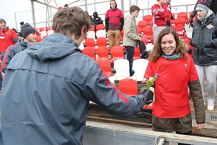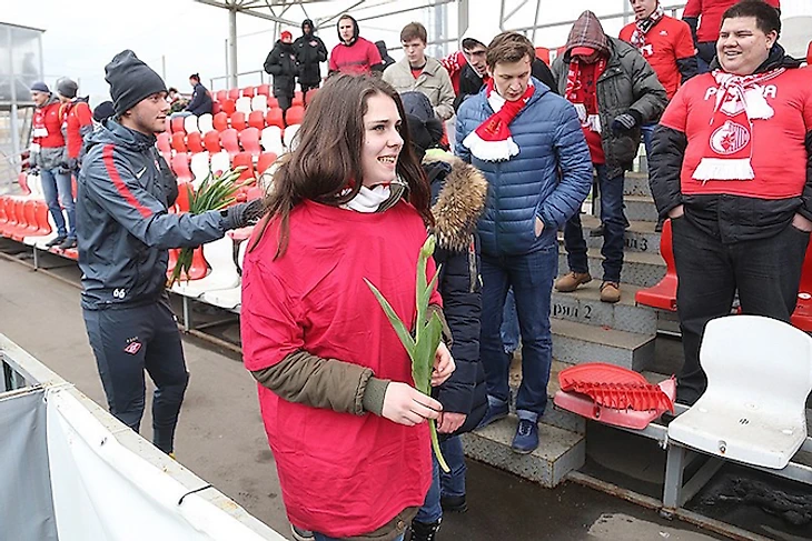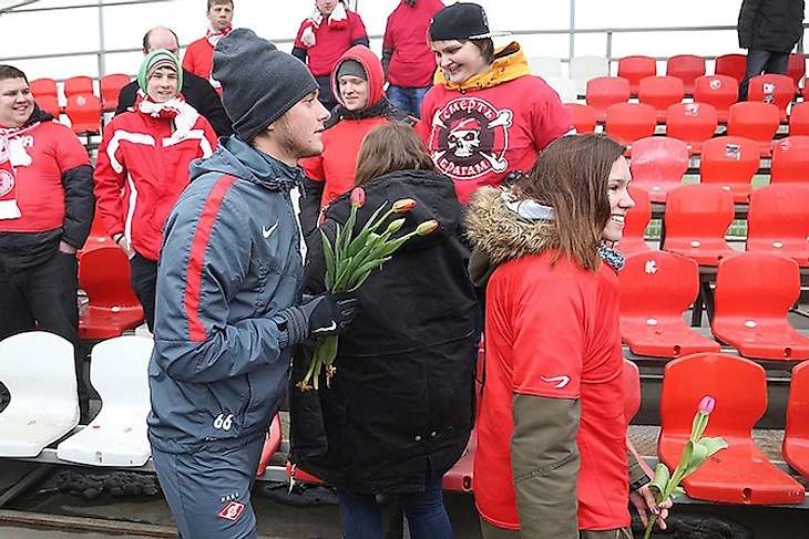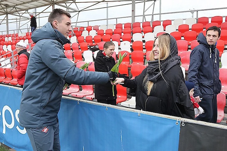 Молодежь «Спартака» дарит болельщицам тюльпаны