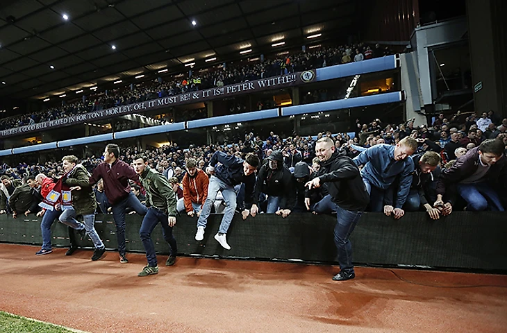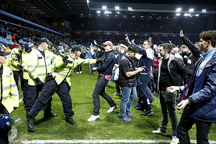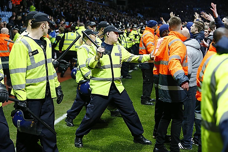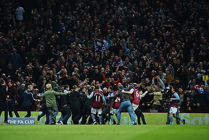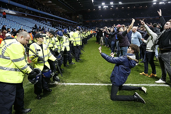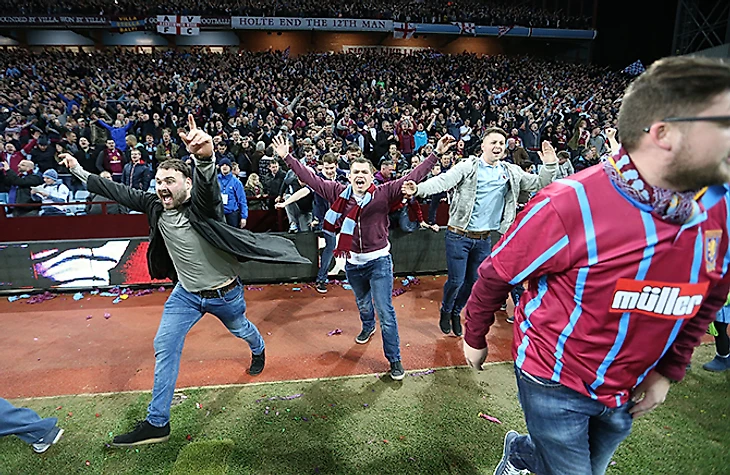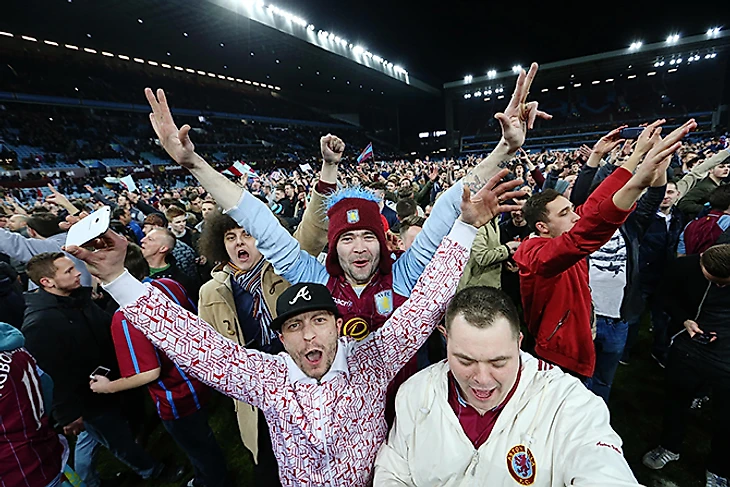 В четвертьфинальном матче Кубка Англии «Астон Вилла» победила «Вест Бромвич» – 2:0. Болельщики бирмингемцев решили отметить это прямо на поле «Вилла Парк».