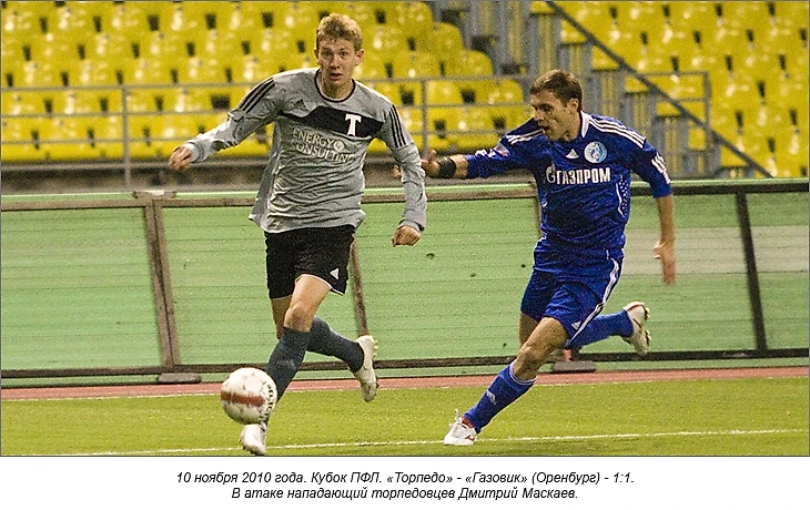 «Газовик» (Оренбург) – «Торпедо» - 1:1 (0:1) 10.11.2010 (среда). Начало – 18:30. Москва. Стадион «Лужники». 200 зрителей. «Торпедо»: Фролов, Кирсанов, Рекуданов, Булатенко, Коновалов (Сафронов, 64), Светозаров, Стеклов, Петров, Аджинджал (Кабанов, 84), Бурмистров (Чертов, 71), Маскаев (Сергеев, 90). Запасные: Лунёв, Идрисов, Панов. Тренер – И.В.Чугайнов. Голы: 0:1 Петров (15), 1:1 Жданкин (89).