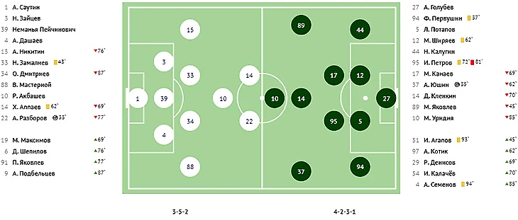 Полтора тайма подопечные Александра Кержакова провели в большинстве, но ничего интересного у ворот Сергея Волкова придумать так и не сумели. «Акрон» грамотно оборонялся и даже иногда проводил контратаки, так что хозяева один балл заработали.