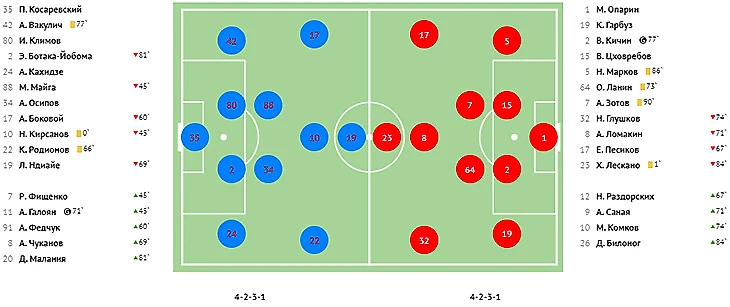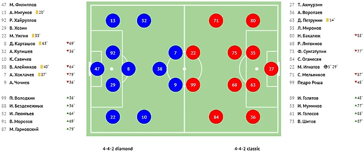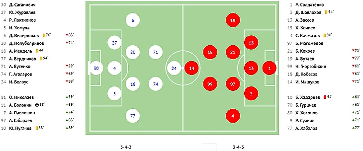 Удаления: Зураев («Алания», 90+), Хадарцев («Алания», 90+).