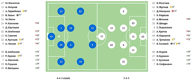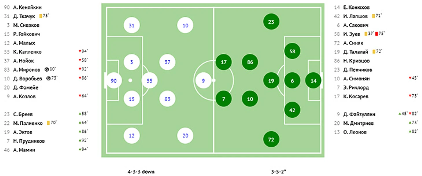 Голы: Воробьёв, 75 (1:0). Миронов, 81 (2:0).