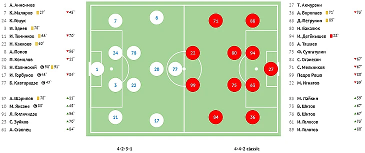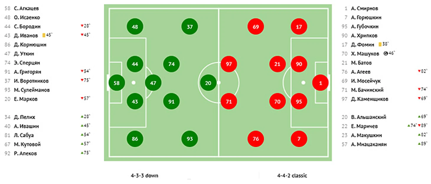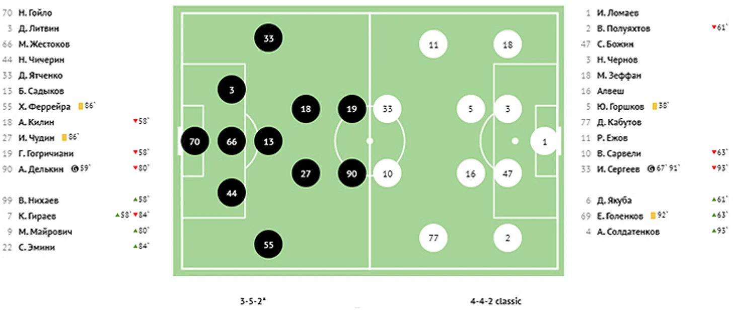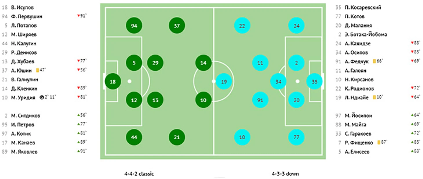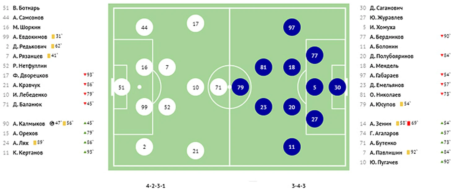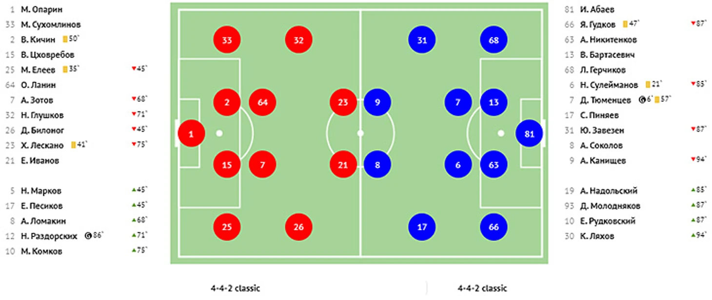 Голы: Горбунов, 45+ (1:0). Кавтарадзе, 48 (2:0).Янсане, 88 (3:0). Калинский, 90+ - с пенальти (4:0).