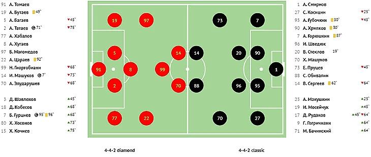 Голы: И.Машуков, 6 (1:0). Стеклов - в свои ворота, 20 (2:0). Татаев, 79 (3:0). Гурциев, 90 (4:0).