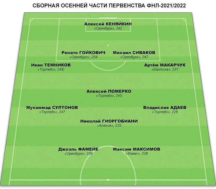 Сборная осенней части первенства ФНЛ-2021/2022. По четыре игрока «Торпедо» и «Оренбурга»