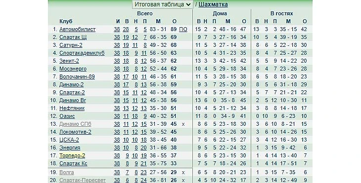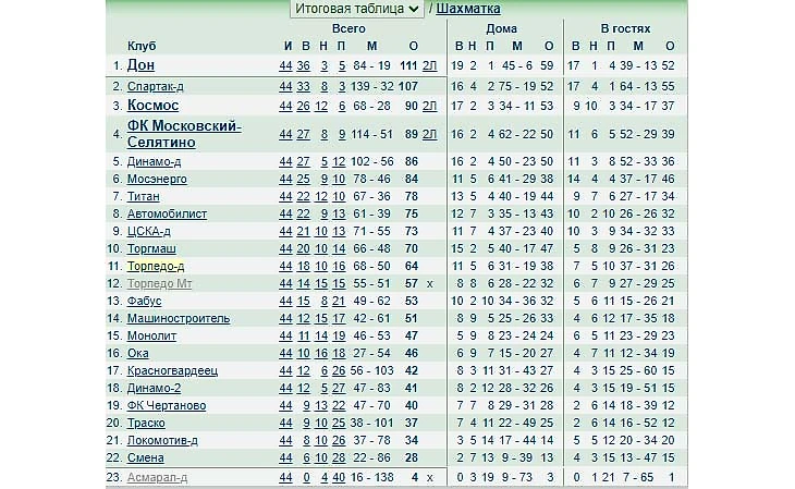 Чемпионат России 1994, третья лига Зона 3 - 15-е место