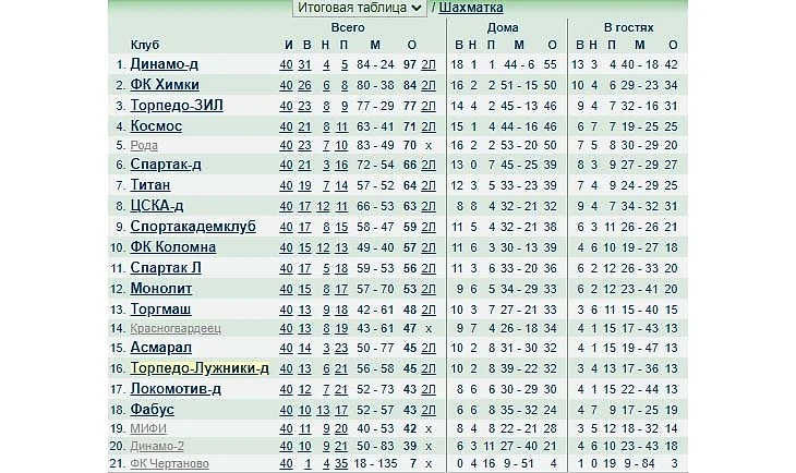 Чемпионат России 1999, второй дивизион Запад - 17-е место