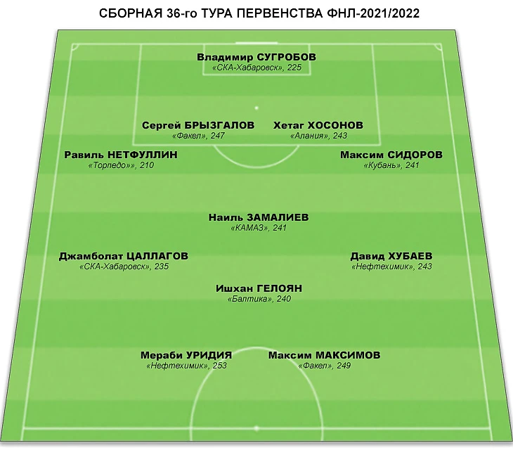 Сборная 36-го тура ФНЛ. По два игрока «СКА-Хабаровск», «Факела» и «Нефтехимика»