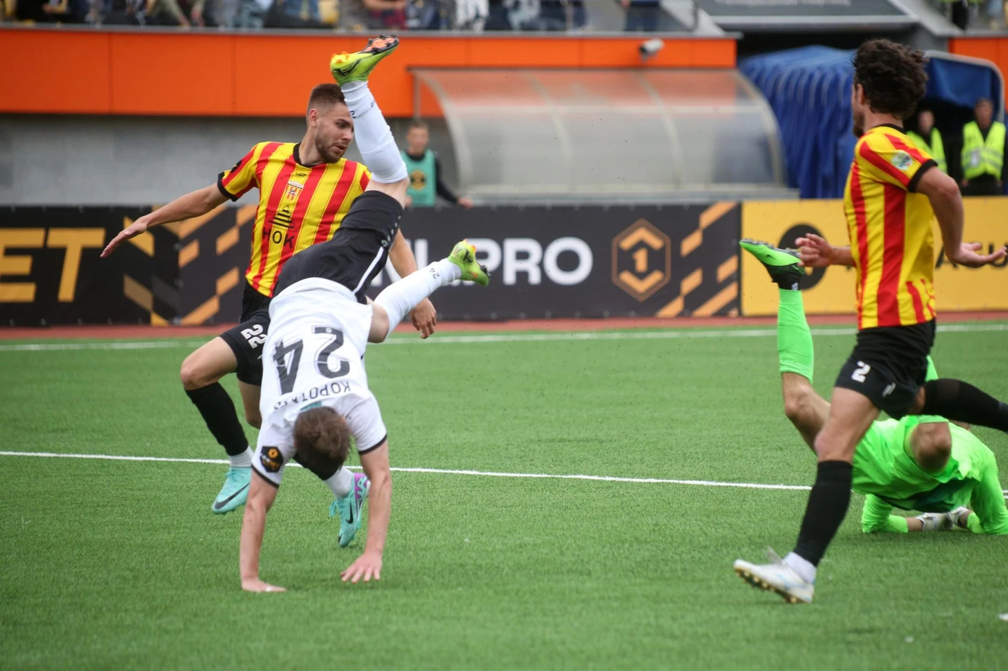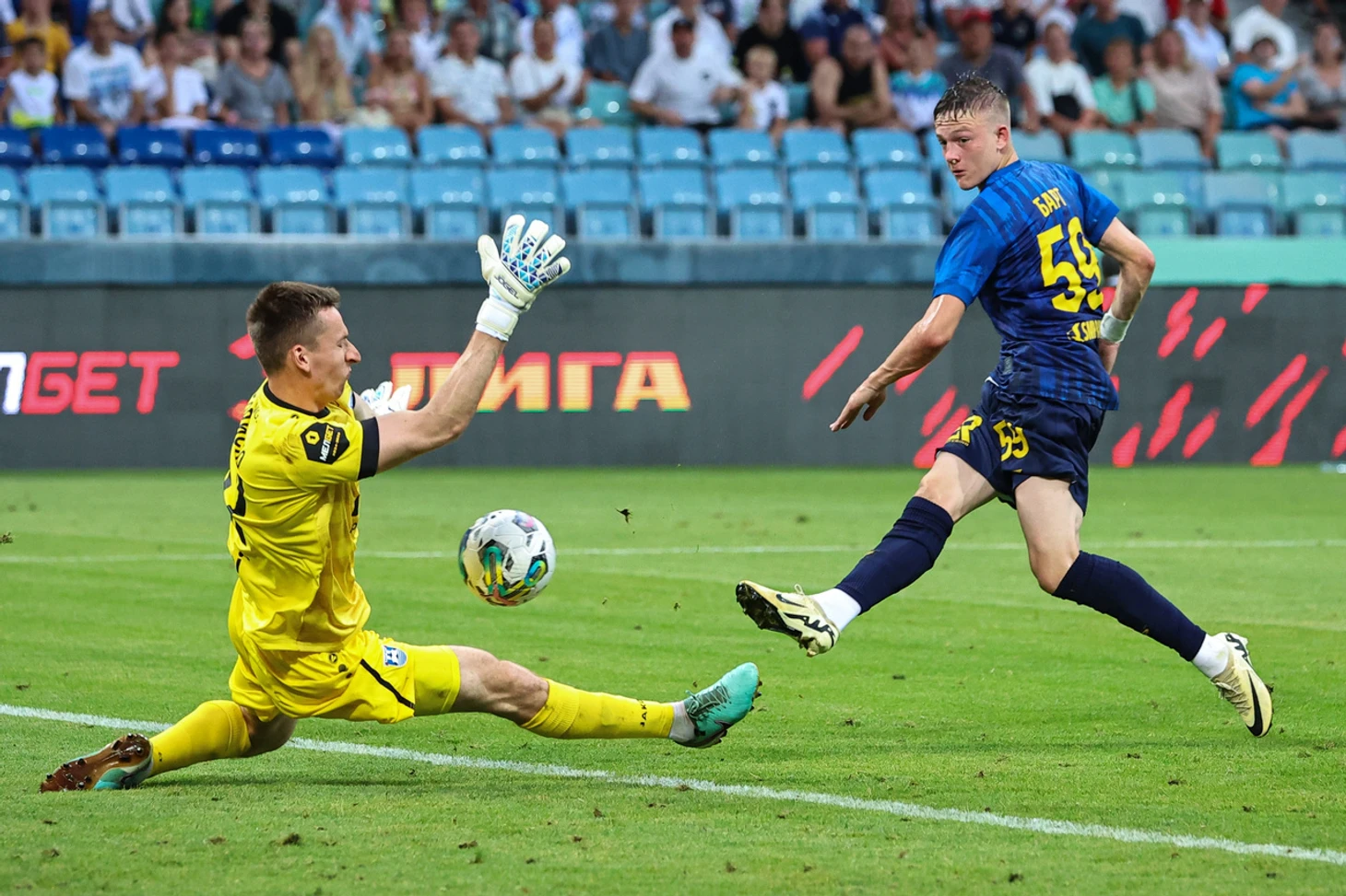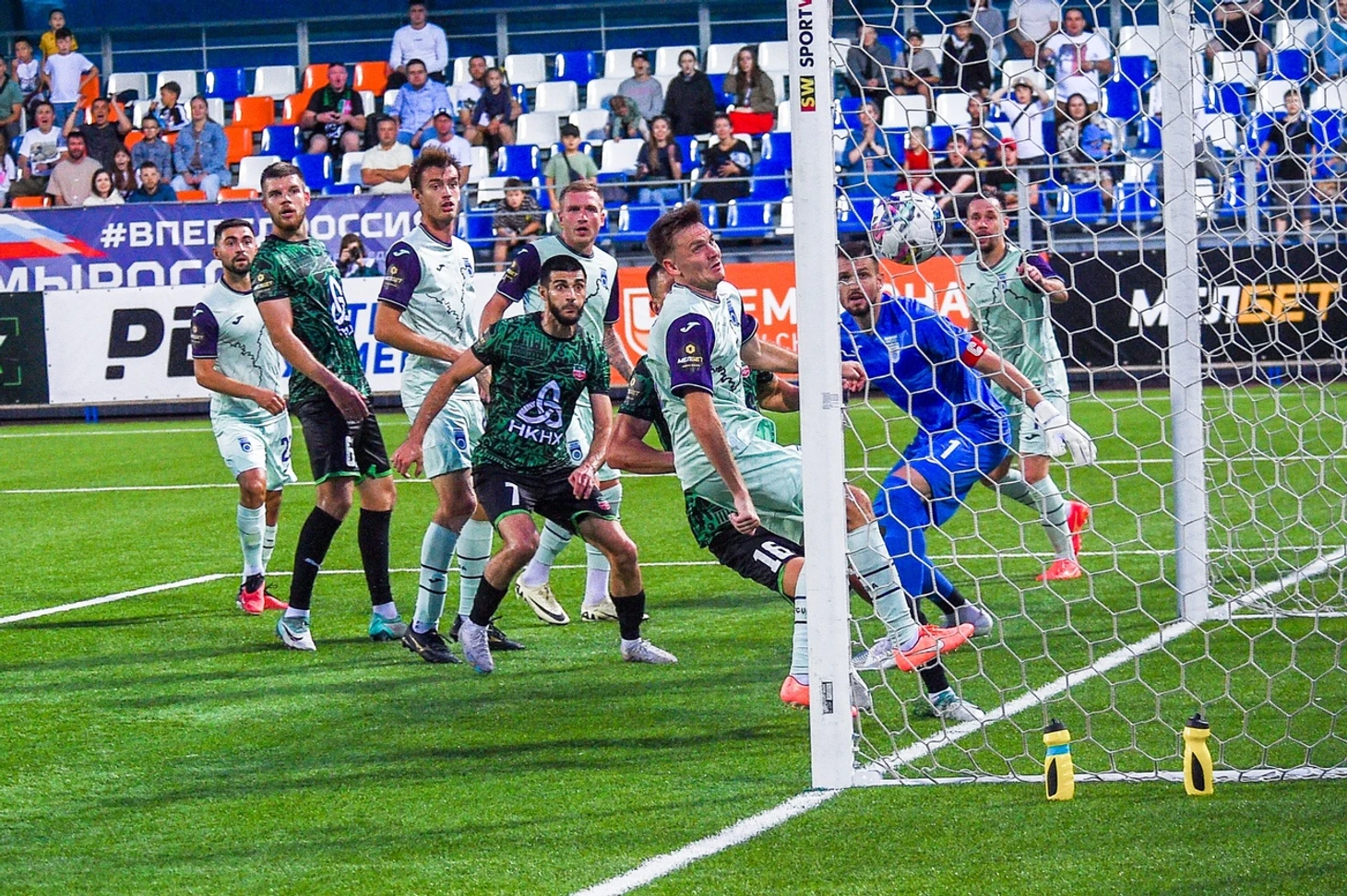 Они открыли счёт на 63-й минуте, использовав свой угловой. Пошла отличная подача, Зарыпбеков скинул мяч на ранее выступавшего за новороссийцев Руденко, и тот мощно пробил под перекладину. Такие удары не берутся!