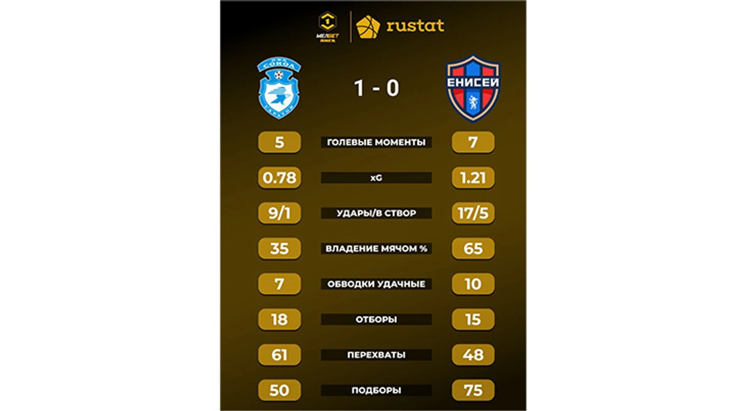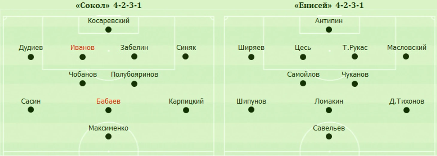 Во втором тайме «Сокол» сыграл строго по счёту, а «Енисей» всеми силами пытался уйти от поражения. Но у команды Андрея Тихонова мало что получалось в атаке.