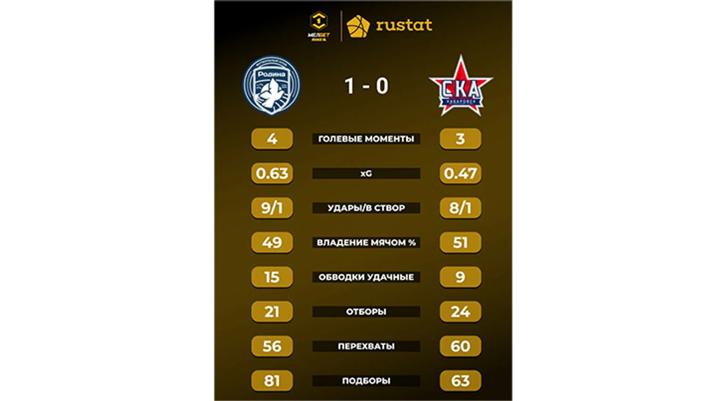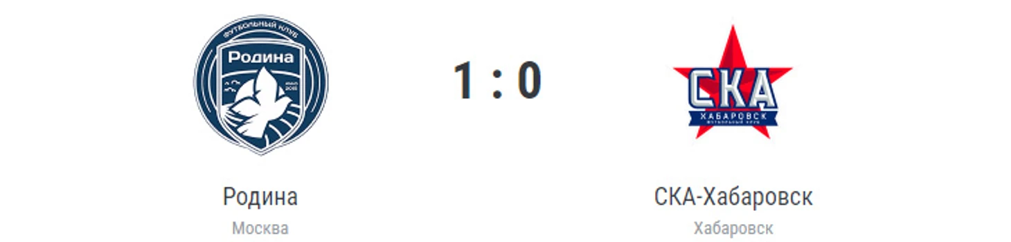 Гол: Рейна, 22. «Родина» (Москва): Корякин, Мещанинов, Клещенко, Крижан, Гордюшенко (Кочиев, 86), Фищенко, Мусаев, Шадринцев, Юшин (Данилин, 67), Абдусаламов (Сокол, 58), Рейна (Шайхтдинов, 58). «СКА-Хабаровск»: Имамов, Садики, Быков, Покидышев, Цаллагов (Халимбеков, 86), Бавин, Першин, Носков (Гаджимурадов, 69), Симонян (Костюков, 76), Алиев (Гонгапшев, 76), Гонгадзе (Шарль, 86). Наказания: нет. Судья: Коваленко (Казань). 20 июля. Москва. Стадион «Сапсан Арена». 587 зрителей.