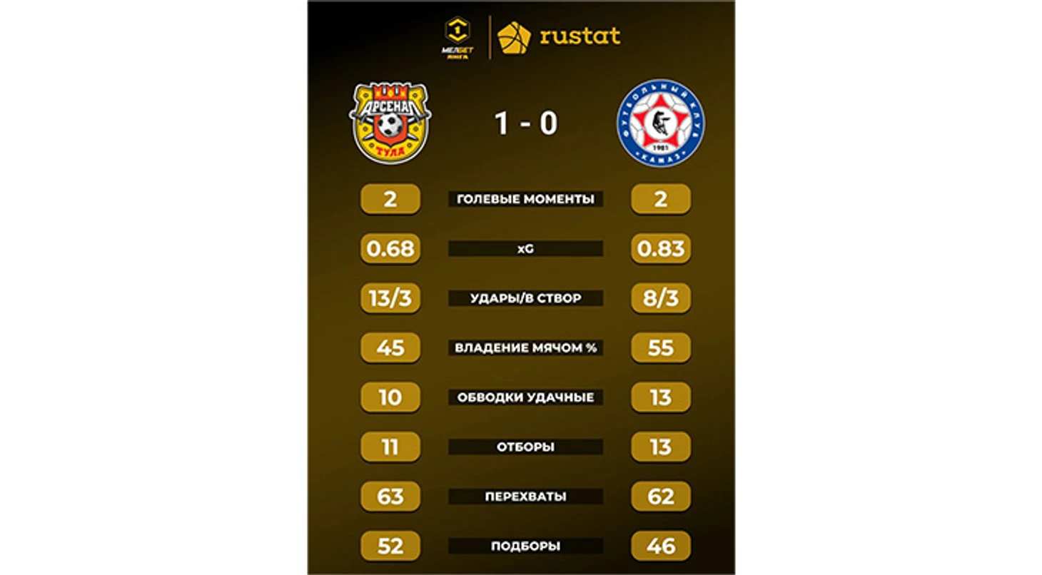 ● Ни в одном из 11 официальных матчей «Арсенала» и «КАМАЗа» не забивалось более двух мячей. ● «Арсенал» стартовал в сезоне двумя домашними победами с одинаковым счётом 1:0.