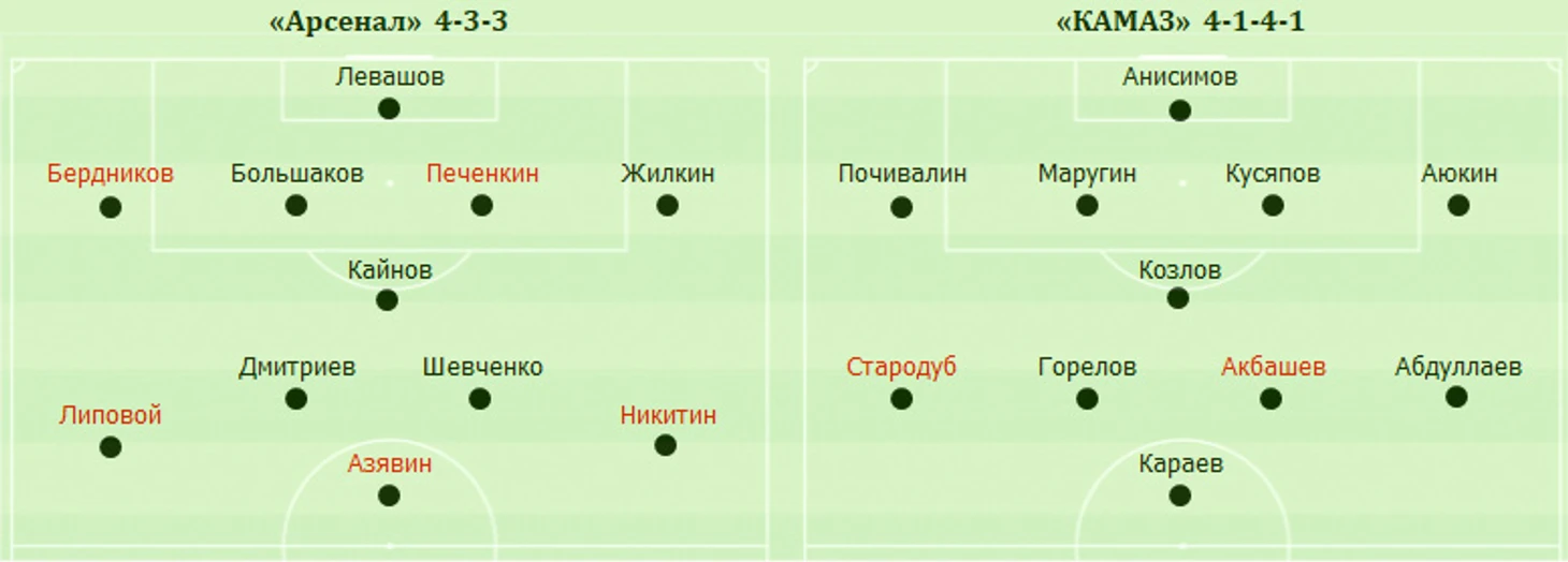 Неизвестно, удалось бы «Арсеналу» дожать «КАМАЗ» с игры, но на авансцену своевременно вышел обладающий пушечным ударом защитник Кирилл Большаков. При исполнении очередного «стандарта» он с неочевидной позиции метров с 30 закрутил мяч в створ ворот «КАМАЗа», и отскок от газона смутил голкипера гостей Анисимова. Этот гол решил судьбу матча.