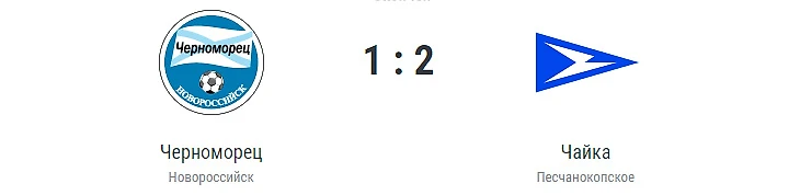 Голы: Руденко, 63 (0:1). Хабалов, 82 (1:1). Хохлачев, 90+2 (1:2). «Черноморец» (Новороссийск): Фролкин, Безчаснюк (Хабалов, 46), Стежко (Фомин, 60), Чинчинадзе, Красильченко (Мусалов, 79), Иванов (Кротов, 63), Ланин, Енин, Родионов, Антонов, Окладников (Уридия, 46). «Чайка» (Песчанокопское): Штепа, Пелих, Нестеров, Кармаев, Пивоваров, Янов (Маляров, 59), Зарыпбеков, Кожедуб, Хохлачев, Бамматгереев (Руденко, 54), Библик (Ибрагимов, 71). Наказания: Зарыпбеков, 31. Нестеров, 43. Енин, 49. Маляров, 69. Красильченко, 76. Пивоваров, 78 (предупреждения). Судья: Матвеев (Троицк). 21 июля. Новороссийск. Стадион «Центральный». 6158 зрителей.