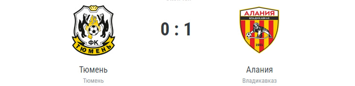 Гол: Гаглоев, 90+4. «Тюмень»: Савин, Бем, Петров, Шавлохов, Поройков (Воропаев, 68), Савинов, Талалай, Кулишев (Марьянов, 68), Ткачук (Медведев, 62), Кенфак (Косарев, 83), Купцов (Коротаев, 62). «Алания» (Владикавказ): Солдатенко, Бутаев, Татаев, Плиев, Качмазов (Москаленчик, 75), Цаллагов, Чочиев (Хугаев, 75), Макаров (Абдоков, 85), Тарба (Гаглоев, 62), Хадарцев (Кокоев, 62), Долгов. Наказания: Хадарцев, 3. Поройков, 30. Чочиев, 72. Абдоков, 89 (предупреждения). Судья: Силантьев (Самара). 21 июля. Тюмень. Стадион «Геолог». 3413 зрителей.