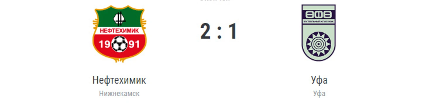 Голы: Пасевич, 10 (0:1). Алиев, 78 (1:1). Шоркин, 87 (2:1). «Нефтехимик» (Нижнекамск): Янович, Валиахметов, Толстопятов, Шоркин, Ситдиков, Петров, Родин (Морозов, 88), Шильцов, Емельянов (Кахидзе, 90+4), Джамилов (Першин, 90+4), Алиев (Шарифуллин, 90+3). «Уфа»: Баклов, Гараев, Теняев, Кутин, Перченок, Гыстаров (Исаев, 74), Анисимов, Мацхарашвили (Агеян, 74), Пасевич (Ложкин, 75), Муллин (Шаваев, 67), Гуренко (Карпов, 60). Наказания: Шоркин, 16. Перченок, 61. Алиев, 80. Шаваев, 85 (предупреждения). Кутин, 56 (удаление). Судья: Анопа (Благовещенск). 21 июля. Нижнекамск. Стадион «Нефтехимик». 1451 зритель.