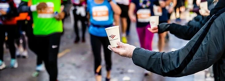 На пунктах питания лучше не останавливаться (после остановки бежать будет сложнее) и пить на ходу – немного сбавлять скорость, брать стаканчик или бутылку воды из рук волонтера, сразу пробегать дальше или немного отбежать в сторону от столов с водой и питанием.