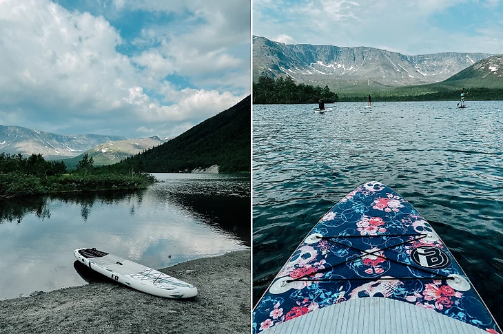 – покататься на сапах по озеру Малый Вудъявр (организаторы катаний Artic Sup довольно безалаберные, записывают на одно и то же время больше человек, чем есть сапов, но виды с воды на горы все равно классные).