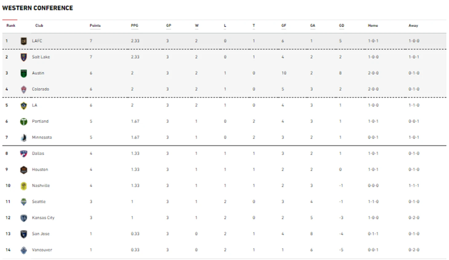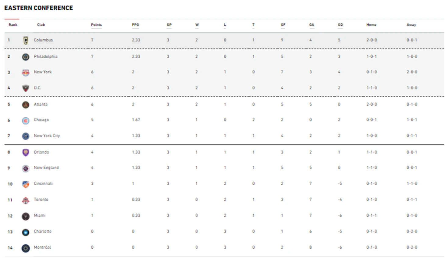 На востоке главенствует Коламбус, у которого было бы 9 очков, если бы не расп.. потеря концентрации в матче с Сан Хосе.