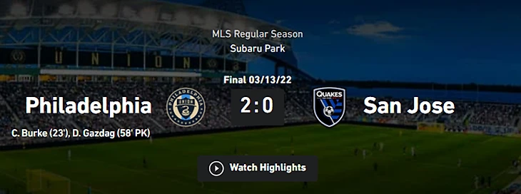 Филадельфия более чем спокойно обыграла дома Сан Хосе 2:0.