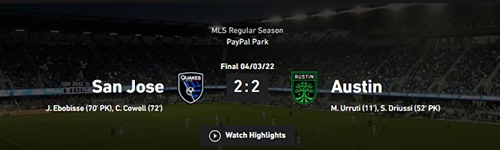 Сан-Хосе зарабатывает второе очко при помощи камбэка и остается одной из двух команд без побед.