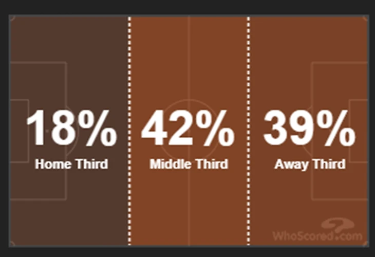 Достаточно сравнить верхнеуровневую статистику первого и второго таймов. (Гутьеррес был удален на 43 минуте). Если в первом тайме Соотношение ударов было 10:5 в пользу Орландо и показатель владение у хозяев составлял 56,5%, то во втором тайме цифры были уже совсем другие 11:2 и 66,9%.
