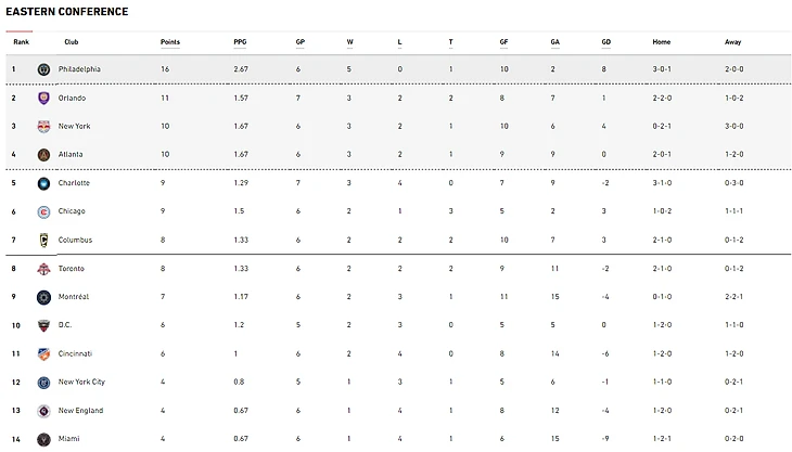 Бросается в глаза катастрофически низкие позиции Сити и Революшн. Обладателя кубка MLS и чемпиона прошлого сезона.