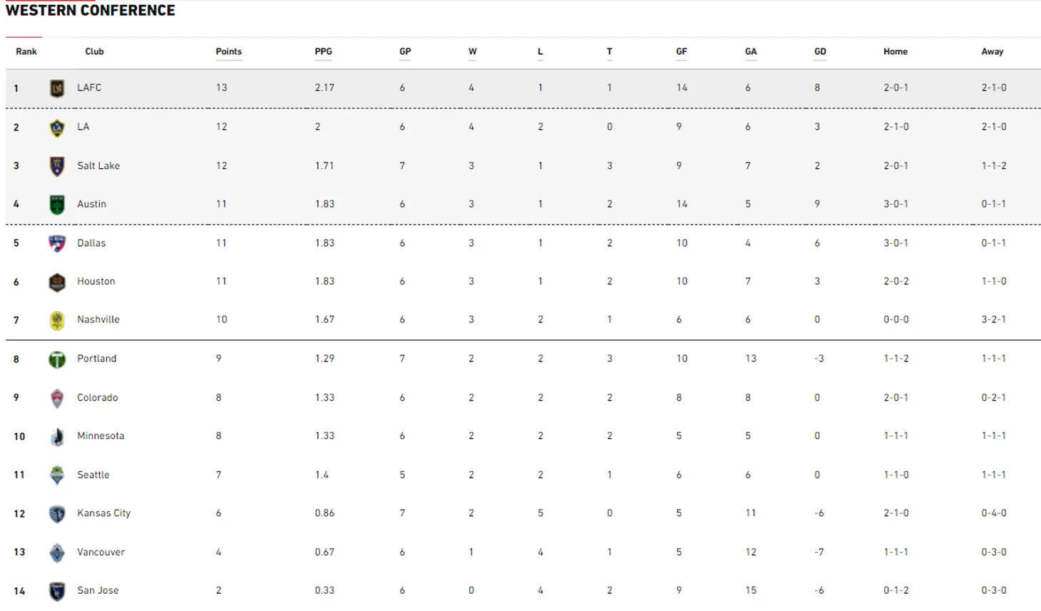 Теперь обе лос-анджелесские команды возглавляют Запад. LAFC, несмотря на поражение, первый, Гэлакси второй.