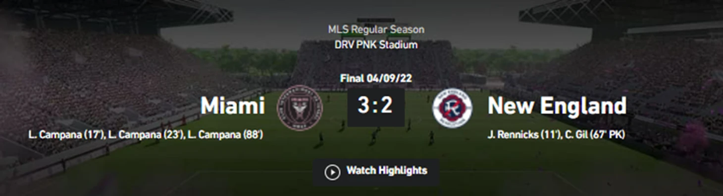 Команда одержала первую победу. Причем сделала это без Игуаина, который то ли травмирован, то ли выведен Невиллом из состава, чтобы аргентинец осознал недостатки своей игры. Как бы там ни было в этот раз у Майами новый герой – 21-летний эквадорец Леонардо Кампана, сотворивший хет-трик.
