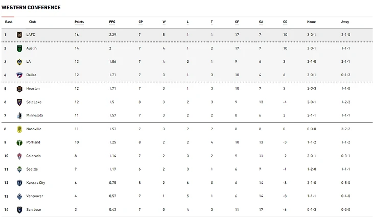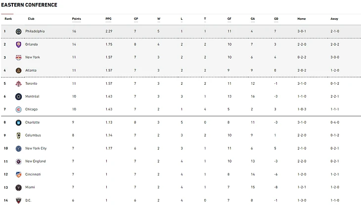 LAFC достал в турнирной таблице Филадельфию и теперь команды возглавляют каждая свою конференцию с 16 очками.