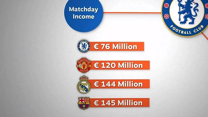 Как и в любом топ-клубе, доход Челси можно разделить на три источника. Доход от игрового дня — это любые деньги, полученные от продажи билетов или корпоративного гостеприимства футбольного клуба. Коммерческий доход включает деньги, полученные от спонсорских сделок или продажи товаров (клубной атрибутики) и, наконец, доход от вещания, также известный как телевизионный доход и соответствующий призовой фонд конкретных соревнований.