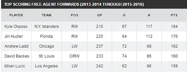 За последние 3 сезона ни один свободный агент рынка 2016 не набрал больше очков, чем Кайл.