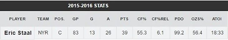 На протяжении долгого времени 31-летний Стаал был отличным забивным центром, но в прошедшем сезоне он набрал только 39 очков, худший результат с первого сезона в лиге (2003-04). Конец сезона был особенно тяжелым, тогда Эрик набрал только 6 очков (3 + 3) за 20 игр в «Рейнджерс».