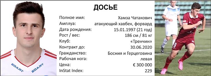 Но чего же парню не хватает для полного счастья и веры в скорейший переход в команду рангом выше? Чатакович не всегда идеально принимает мяч, у него случаются ошибки при передачах, причём не только во время исполнения сложных острых. Его дриблинг порой несколько тягуч, а обводки бывают читаемы. Защитникам, более классным, нежели из чемпионата Словакии, в настоящее время справиться с финтящим Хамзой, думаю, особого труда не составит. Кроме того, наш герой недостаточно уверенно играет корпусом, мягковат в борьбе (в среднем за матч 39% выигранных единоборств) и не обладает выдающимися скоростными данными.